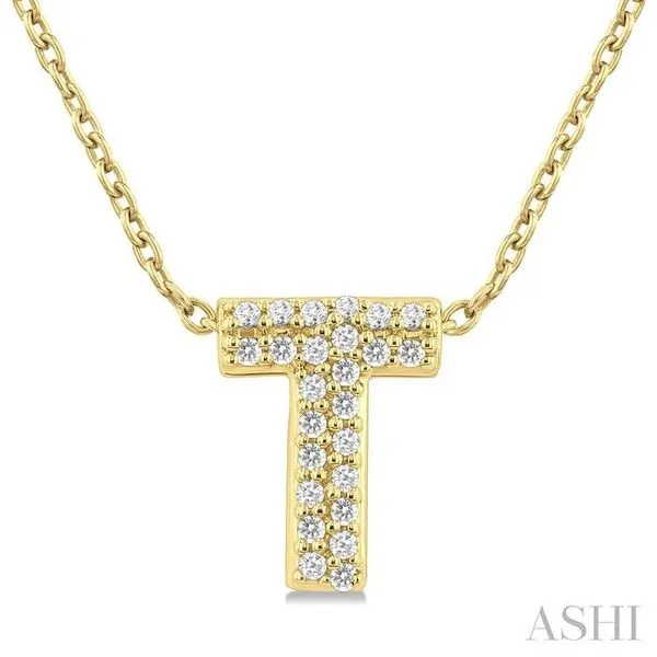 (256) 764-40131/10 Ctw Initial 'T' Round Cut Diamond Fashion Pendant With Chain in 10K Yellow Gold