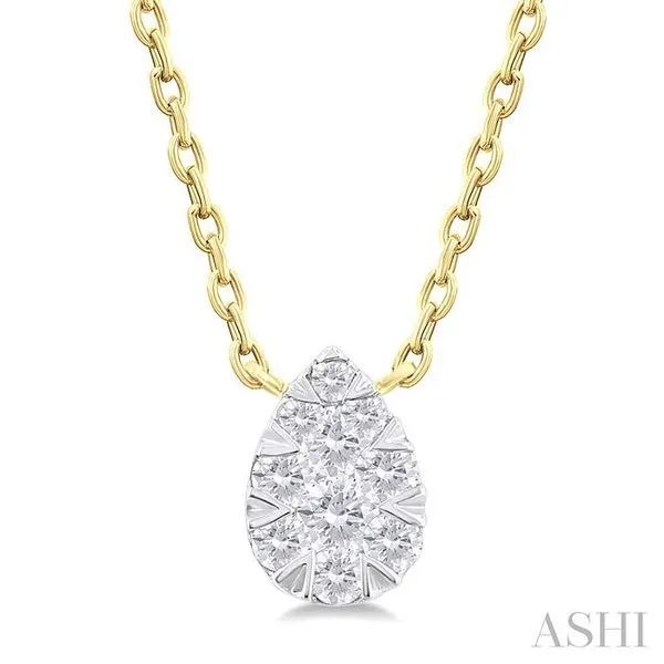 (256) 764-40131/10 Ctw Lovebright Petite Pear Shape Round Cut Diamond Fashion Pendant With Chain in 10K Yellow Gold