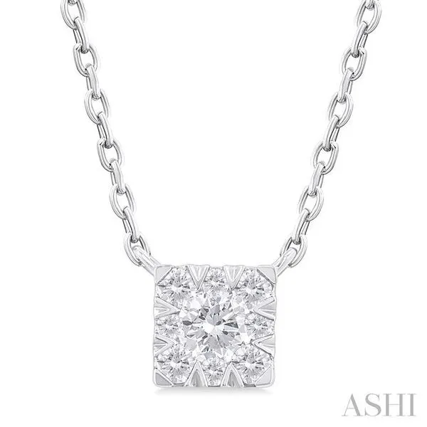 (256) 764-40131/10 Ctw Lovebright Petite Square Shape Round Cut Diamond Fashion Pendant With Chain in 10K White Gold