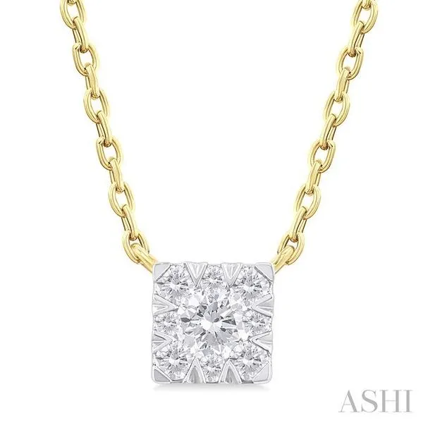 (256) 764-40131/10 Ctw Lovebright Petite Square Shape Round Cut Diamond Fashion Pendant With Chain in 10K Yellow Gold