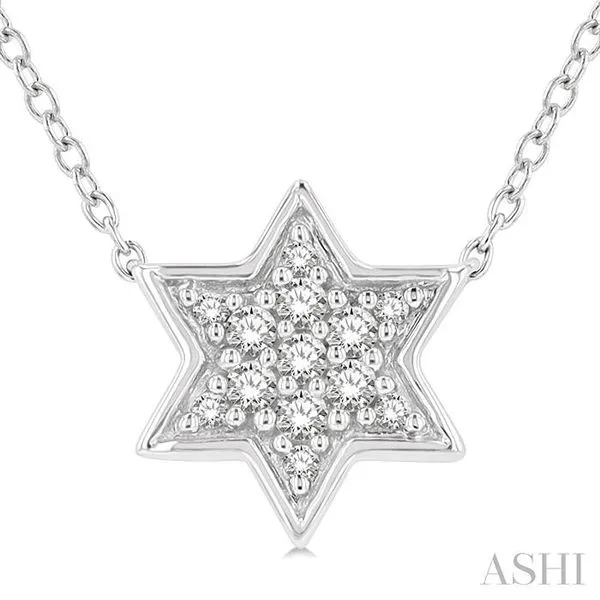 (256) 764-40131/10 Ctw Star of David Petite Round Cut Diamond Fashion Pendant With Chain in 10K White Gold