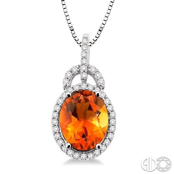 (256) 764-401311x9mm Oval Cut Citrine and 1/3 Ctw Round Cut Diamond Pendant in 14K White Gold with Chain