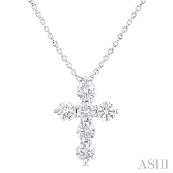 (256) 764-40131/2 Ctw Round Cut Diamond Christian Cross 6-Stone Fashion Pendant With Chain in 14K White Gold