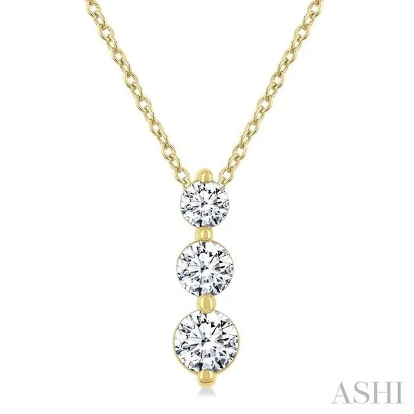 (256) 764-40131/2 Ctw Round Cut Diamond Three-Stone Snowman Pendant With Chain in 14K Yellow Gold