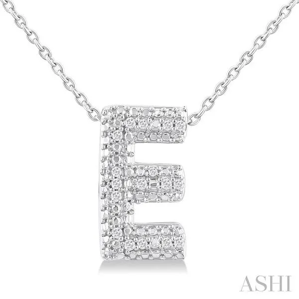 (256) 764-40131/20 Ctw Bubble Accent Initial 'E' Round Cut Diamond Fashion Pendant With Chain in Sterling Silver