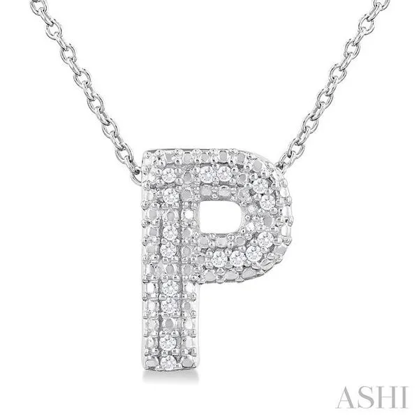(256) 764-40131/20 Ctw Bubble Accent Initial 'P' Round Cut Diamond Fashion Pendant With Chain in Sterling Silver