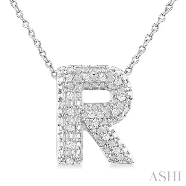 (256) 764-40131/20 Ctw Bubble Accent Initial 'R' Round Cut Diamond Fashion Pendant With Chain in Sterling Silver