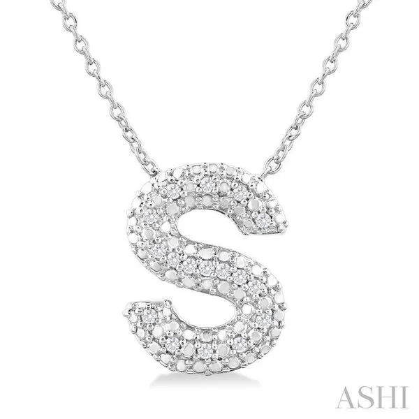 (256) 764-40131/20 Ctw Bubble Accent Initial 'S' Round Cut Diamond Fashion Pendant With Chain in Sterling Silver