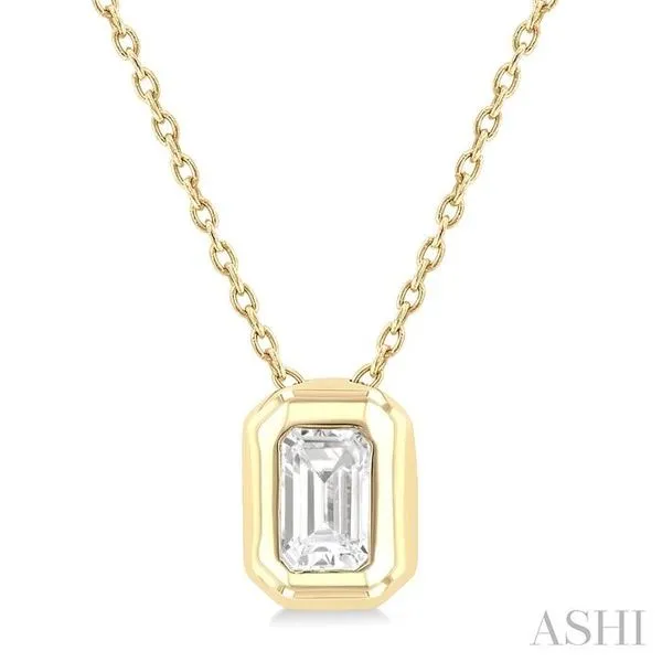 (256) 764-40131/3 Ctw Bezel Set Emerald Cut Diamond Bubble Fashion Pendant With Chain in 14K Yellow Gold