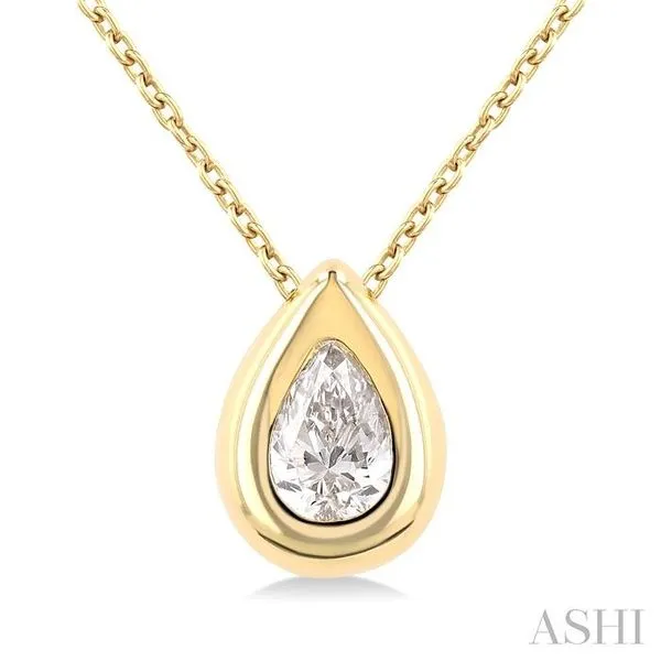 (256) 764-40131/3 Ctw Bezel Set Pear Cut Diamond Bubble Fashion Pendant With Chain in 14K Yellow Gold