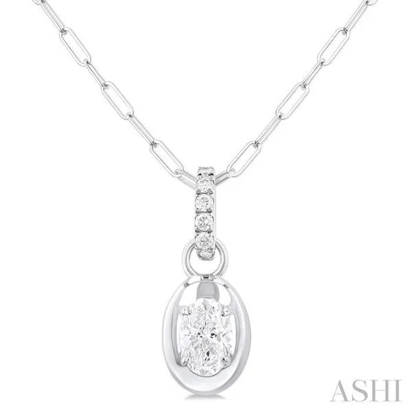 (256) 764-40131/4 Ctw Dome Oval and Round Cut Diamond Fashion Pendant With Paper Clip Chain in 14K White Gold