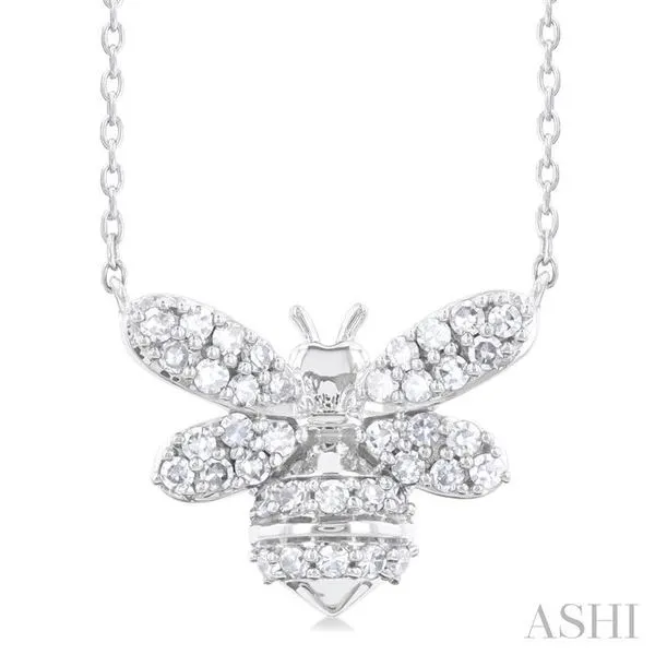 (256) 764-40131/4 Ctw Petite Bumble Bee Round Cut Diamond Fashion Pendant With Chain in 10K White Gold