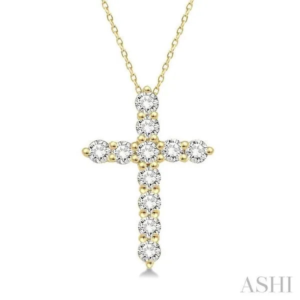 (256) 764-40131/4 Ctw Round Cut Diamond Cross Pendant With Chain in 14K Yellow Gold