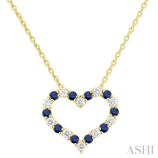 (256) 764-40131.4 MM Round Cut Sapphire and 1/8 Ctw Open Heart Round Cut Diamond Precious Fashion Pendant With Chain in 14K Yellow Gold