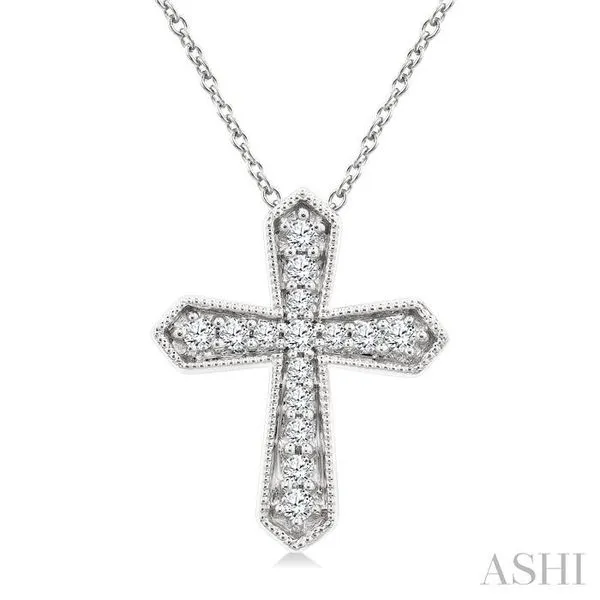 (256) 764-40131/6 Ctw Round Cut Diamond Cross Petite Fashion Pendant With Chain in 10K White Gold
