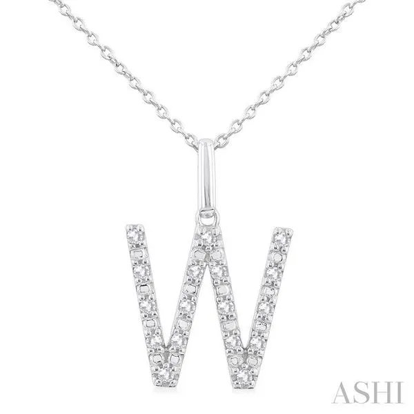 (256) 764-40131/8 Ctw Initial 'W' Round Cut Diamond Fashion Pendant With Chain in Sterling Silver