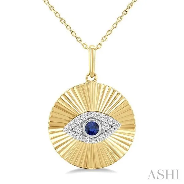 (256) 764-40132.5 MM Round Shape Sapphire and 1/8 Ctw Fluted Evil Eye Round Cut Diamond Precious Fashion Pendant With Chain in 14K Yellow and White Gold