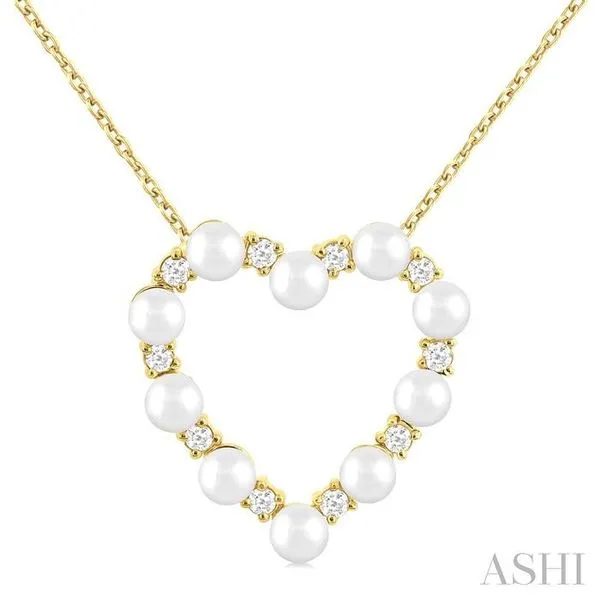 (256) 764-40133 MM Round Shape Cultured Pearl and 1/5 Ctw Heart Shape Round Cut Diamond Pendant With Chain in 14K Yellow Gold
