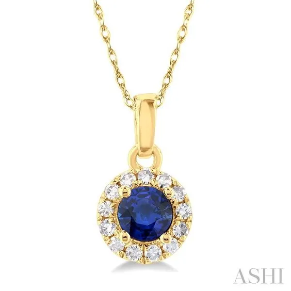(256) 764-40133.25 MM Round Sapphire and 1/20 Ctw Single Cut Diamond Halo Precious Pendant with Chain in 14K Yellow Gold