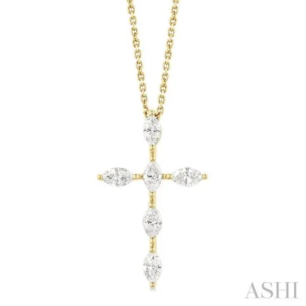 (256) 764-40133/4 Ctw Cross 6-Stone Marquise Cut Diamond Fashion Pendant With Chain in 14K Yellow Gold
