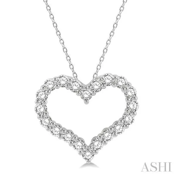 (256) 764-40133/4 Ctw Heart Shape Round Cut Diamond Pendant With Chain in 14K White Gold