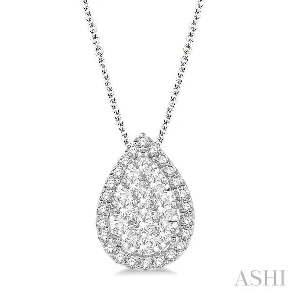 (256) 764-40133/4 Ctw Pear Shape Lovebright Round Cut Diamond Pendant With Chain in 14K White Gold