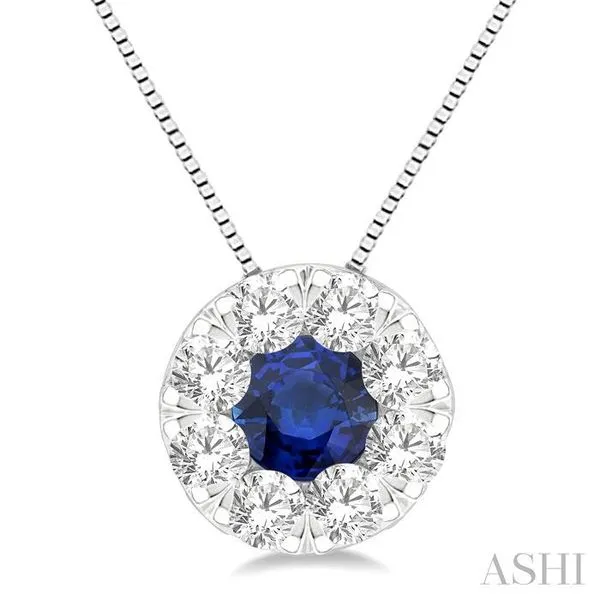 (256) 764-40133.8 MM Sapphire and 1/3 Ctw Round Cut Lovebright Diamond Precious Pendant With Chain in 14K White Gold