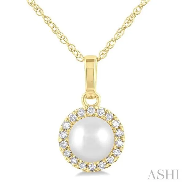 (256) 764-40135 MM White Cultured Pearl and 1/20 Ctw Single Cut Diamond Halo Pendant With Chain in 10K Yellow Gold