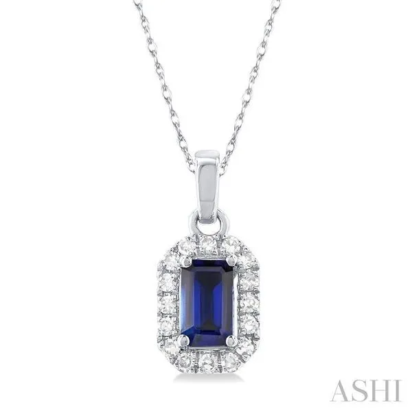 (256) 764-40135x3 MM Octagonal Shape Sapphire and 1/20 Ctw Single Cut Diamond Halo Precious Pendant with Chain in 10K White Gold