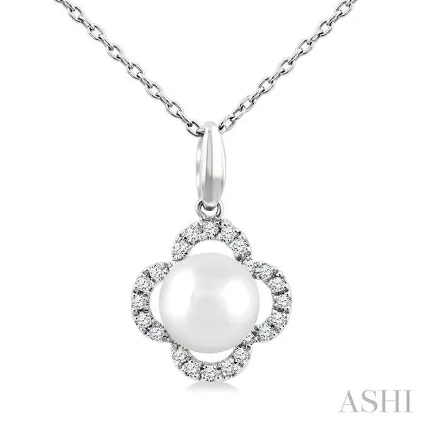(256) 764-40136 MM Cultured Pearl and 1/10 Ctw Single Cut Diamond Clover Petite Fashion Pendant With Chain in 10K White Gold