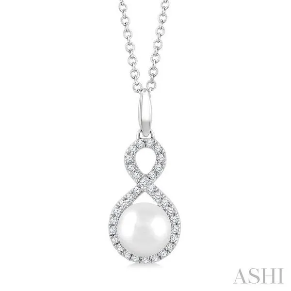 (256) 764-40136 MM Cultured Pearl and 1/8 Ctw Single Cut Diamond Petite Fashion Pendant With Chain in 10K White Gold