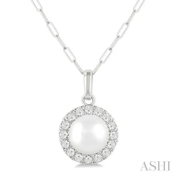 (256) 764-40136 MM Cultured White Pearl and 1/6 Ctw Single Cut Diamond Halo Pendant With Chain in 10K White Gold