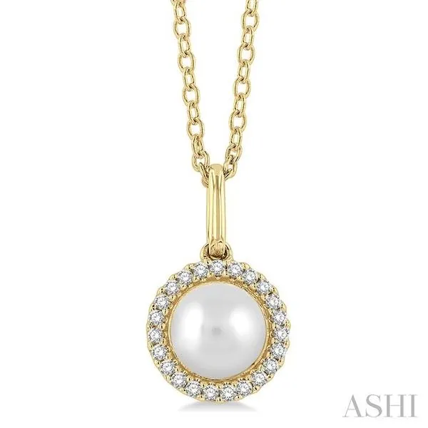 (256) 764-40136 MM Round Shape Cultured Pearl and 1/20 Ctw Petite Round Cut Diamond Halo Fashion Pendant With Chain in 10K Yellow Gold