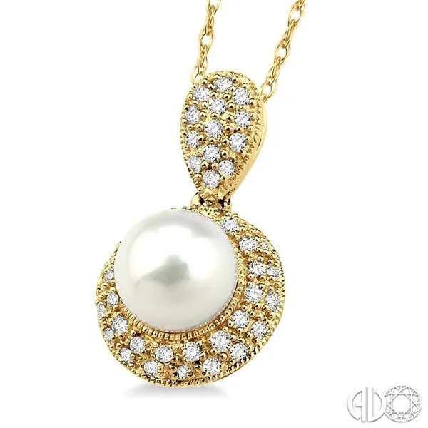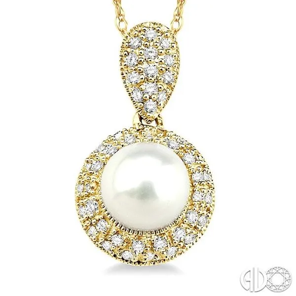 (256) 764-40136.5 mm Cultured Pearl and 1/4 Ctw Single Cut Diamond Pendant in 10K Yellow Gold with Chain