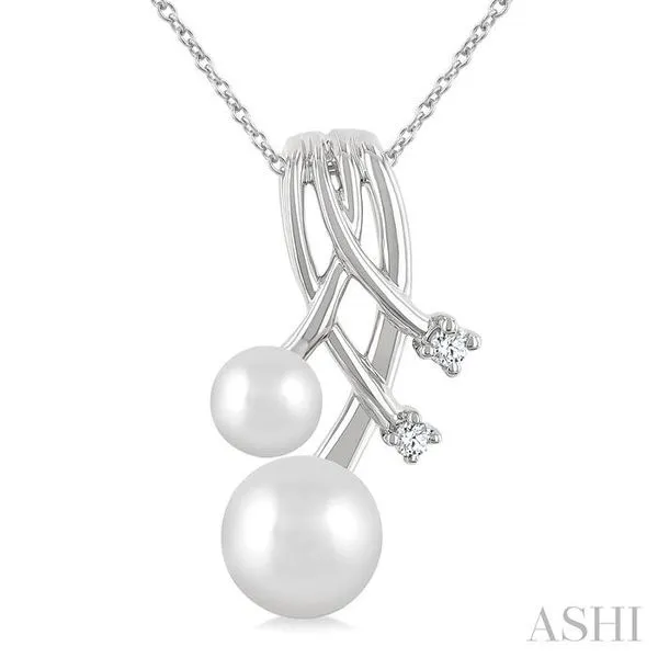 (256) 764-40137-5 MM Cultured Pearl and 1/20 Ctw Round Cut Diamond Fashion Pendant With Chain in 10K White Gold