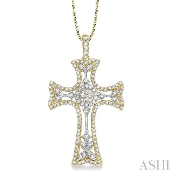 (256) 764-40137/8 Ctw Round Cut Diamond Cross Pendant With Chain in 14K Yellow and White Gold