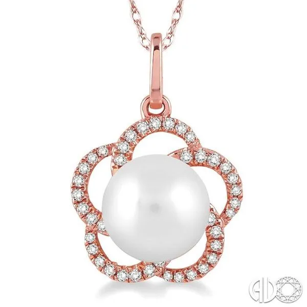 (256) 764-40137x7 MM Cultured Pearl and 1/8 Ctw Round Cut Diamond Pendant in 14K Rose Gold with Chain