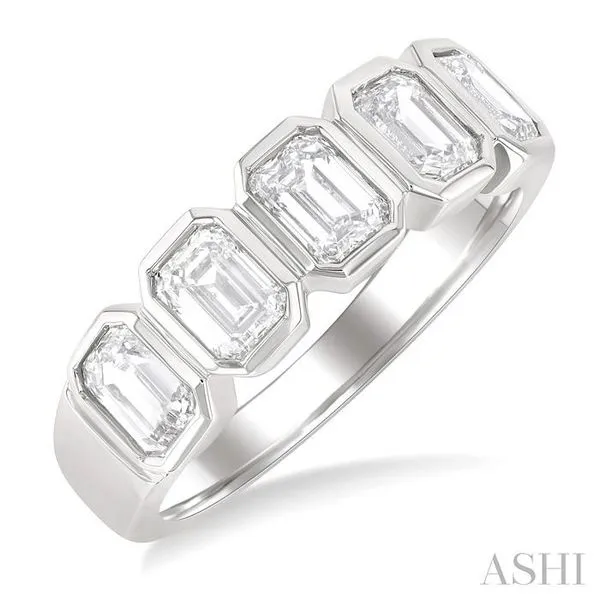 (256) 764-40131 1/2 Ctw Bezel Set 5-Stone Emerald Cut Diamond Fashion Band in 14K White Gold