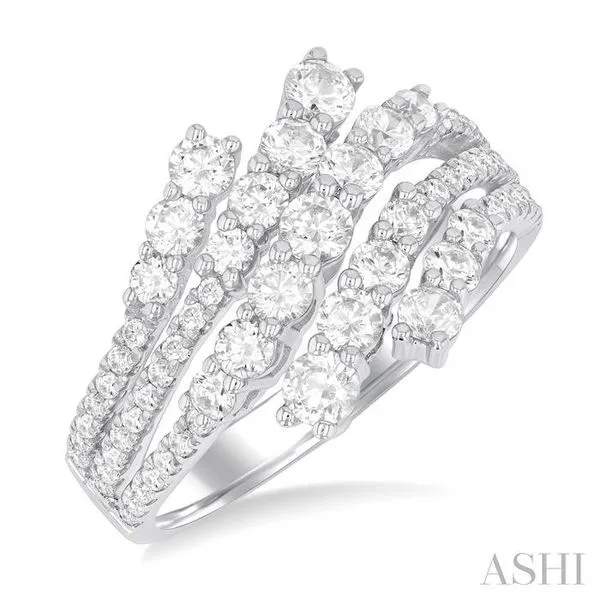 (256) 764-40131 1/2 Ctw Triple Split Wide Bypass Round Cut Diamond Fashion Ring in 14K White Gold