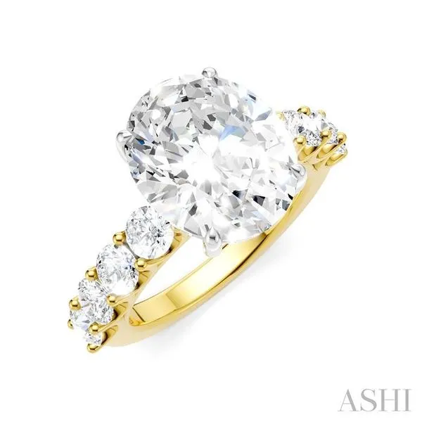 (256) 764-40131 1/3 Ctw Oval Shape Round Cut Diamond Semi-Mount Engagement Ring in 14K Yellow and White Gold