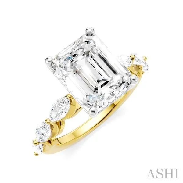 (256) 764-40131 Ctw Emerald Shape Marquise and Round Cut Diamond Semi-Mount Engagement Ring in 14K Yellow and White Gold