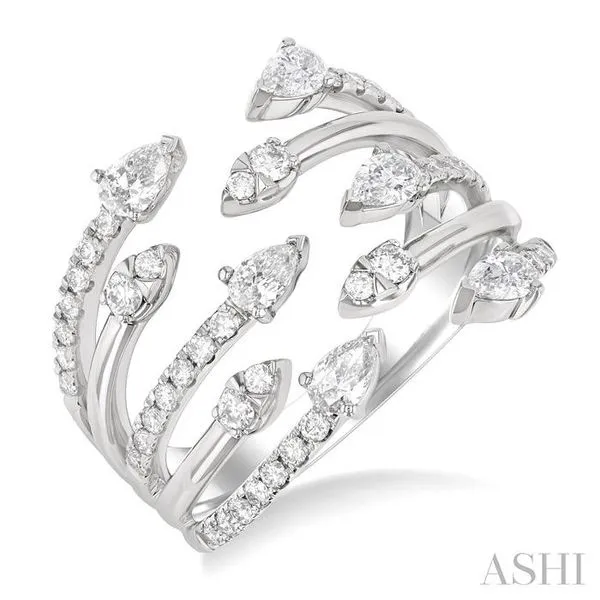 (256) 764-40131 Ctw Five-Way Split Pear and Round Cut Diamond Fashion Open Ring in 14K White Gold