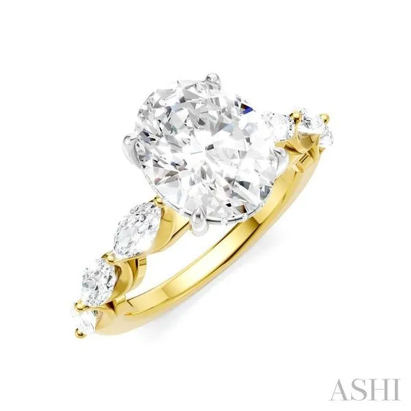 (256) 764-40131 Ctw Oval Shape Marquise and Round Cut Diamond Semi-Mount Engagement Ring in 14K Yellow and White Gold