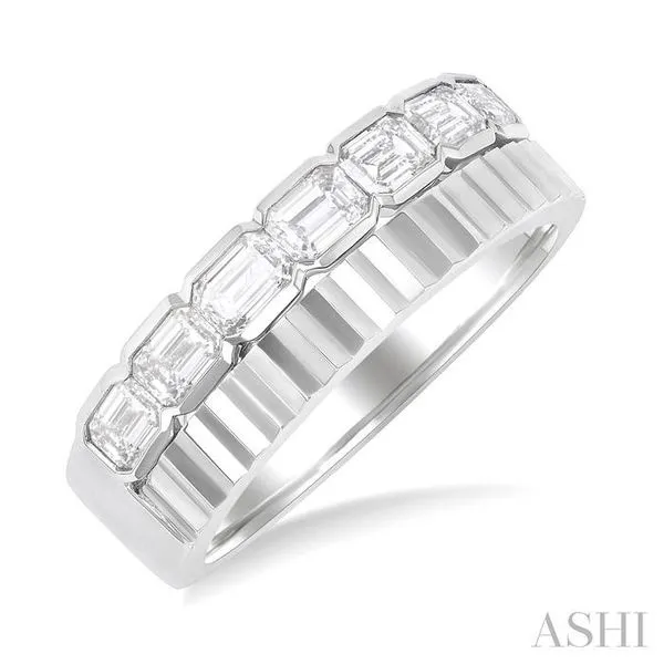 (256) 764-40131 Ctw Pyramid Accents and Bezel Set Emerald Cut Diamond Bold Gold Fashion Wide Band in 14K White Gold
