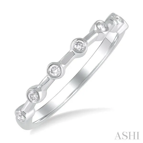 (256) 764-40131/10 Ctw Bezel Set Round Cut Diamond Stackable Wedding Band in 14K White Gold