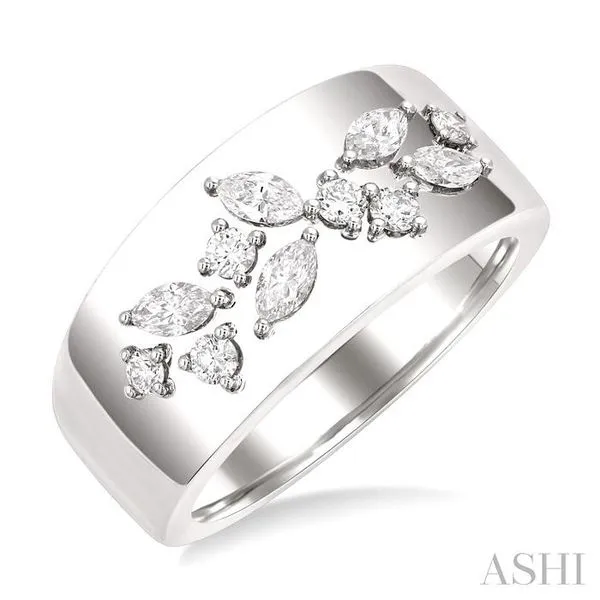 (256) 764-40131/2 Ctw Marquise and Round Cut Diamond Fashion Wide Band in 14K White Gold