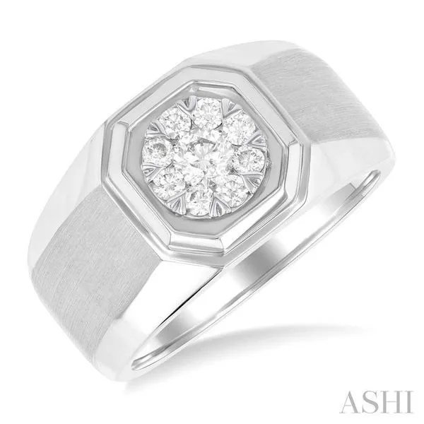 (256) 764-40131/2 Ctw Octagonal Shape Lovebright Round Cut Diamond Men's Ring in 10K White Gold