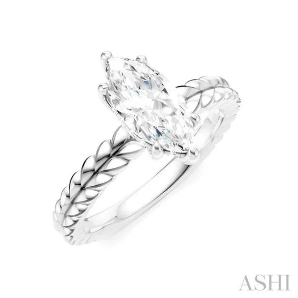 (256) 764-40131/20 Ctw Marquise Shape Round Cut Diamond Semi-Mount Engagement Ring in 14K White Gold