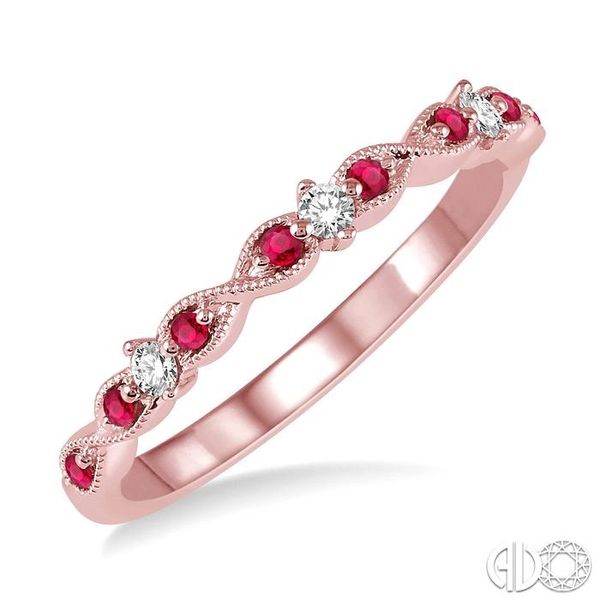 (256) 764-40131.25 MM Ruby and 1/10 Ctw Round Cut Diamond Precious Wedding Band in 14K Rose Gold