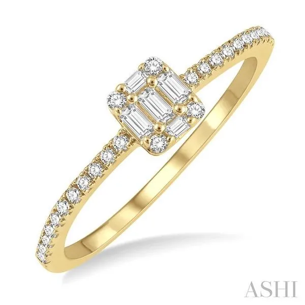 (256) 764-40131/4 Ctw Cushion Shape Petite Baguette and Round Cut Diamond Fashion Promise Ring in 10K Yellow Gold